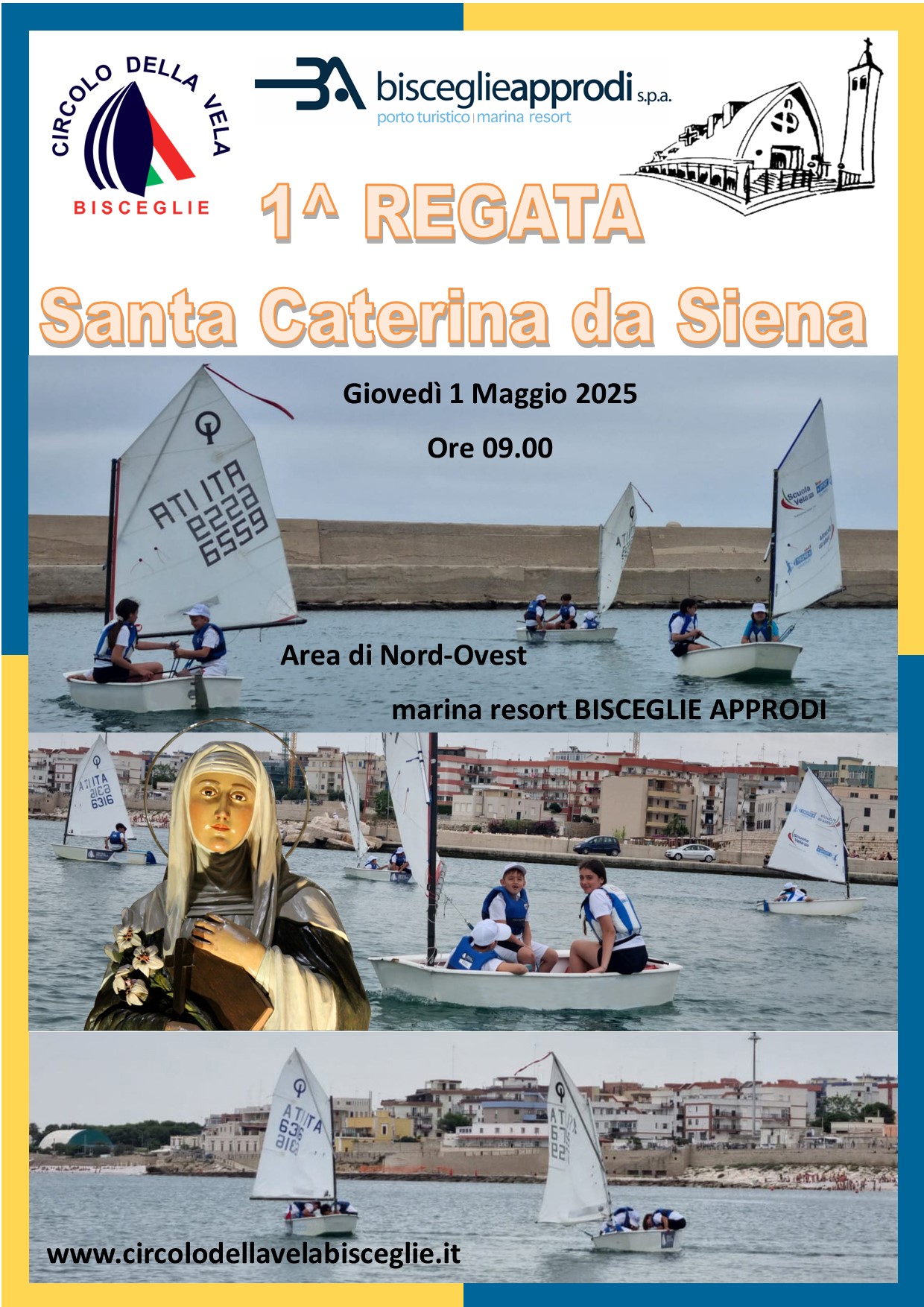 Sede Circolo della Vela Bisceglie Via porta di mare 9,, BisceglieIl Circolo della Vela di Bisceglie organizza, in collaborazione con il marina resort Bisceglie Approdi e la parrocchia Santa Caterina da Siena di Bisceglie (con il parroco Don Pasquale Bovio), la PRIMA REGATA SANTA CATERINA DA SIENA. La manifestazione avrà luogo a partire dalle ore 09.00 di Giovedì 01 Maggio 2025, nelle acque portuali di […]