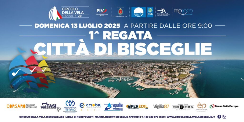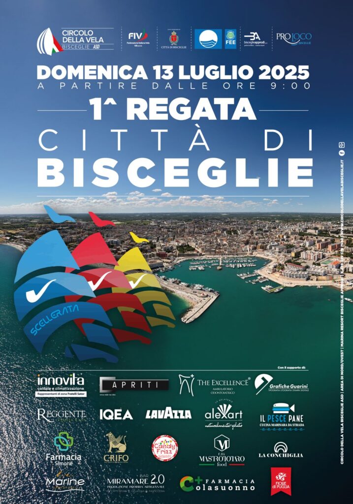 Il Circolo della Vela di Bisceglie, da sempre punto di riferimento per la divulgazione della cultura velica e marinaresca, organizza la 1^ regata CITTA’ di BISCEGLIE.